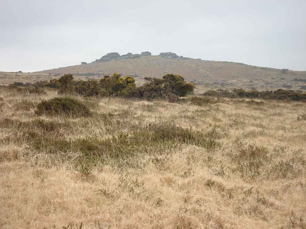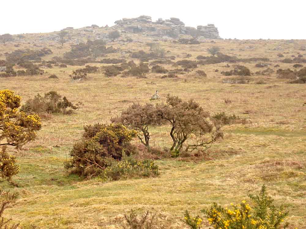 Prowtytown Rocks, in the distance, at SX 528 745, which give a good view over Tavistock.