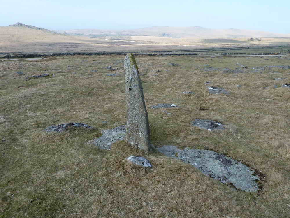 Longash Leat, it goes on to run between the two Merrivale stone rows to Longash Farm.
